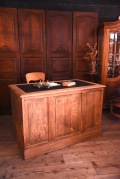 フランスで買い付けたカウンターデスク。ずっしりとした重厚感と明るい木肌は年代と共に味わいを増した風合いもあり、深みを感じさせてくれます。レザートップの天板で、置いていただくだけで空間を格上げしてくれます。引き出しなど収納力もあるので、デスクはもちろん、店舗のカウンターやディスプレイ用の什器などとしてもおすすめです。