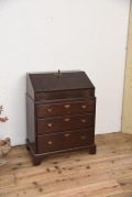 イギリスで買い付けたライティングビューロー。シンプルなフォルムと金具の装飾が美しく、上品な木肌が雰囲気を引き立ててくれており、置いておくだけで存在感があります。開閉式の扉の中には小さな引き出しや棚が付いており、収納もたっぷりできそうです。また下部の引き出し部分も3段あるので、様々な用途で活躍してくれそうです。年代特有の汚れ、傷、色褪せなどがありますが、古い物の持ち味としてお楽しみ頂ければと思います。
