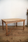 フランスで買い付けた木製テーブル。明るい天板の風合いが良く、重厚感もあり綺麗な脚の装飾などが存在感を引き立ててくれています。シンプルなデザインは空間に合わせやすく、程よいサイズ感はダイニングテーブルやデスクなど様々な用途でご使いになれます。年代特有の汚れ、傷、擦り傷、色褪せ、歪み、シミなどがございますが、古い物の風合いとしてお楽しみください。