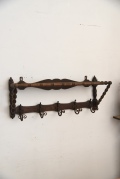 フランスで買い付けた木製のウォールラック。明るい色合いの年月を経た雰囲気ある色味が良く、凝ったデザインながらシンプルなフォルムがどんな空間にも馴染みやすそうです。フックも5つついており、壁面の収納やお気に入りの小物を飾るディスプレイアイテムとしても活躍してくれそうです。