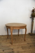 フランスで買い付けたラウンドテーブル。長い間使われていたことが伺える木の風合いが良く、猫脚やサイドのデザインも雰囲気を高めてくれています。使いやすいラウンド型でなのでダイニングテーブルとしてはもちろん、作業台や飾り台など様々な用途や場所で使え、空間の雰囲気づくりや店舗什器としてもおすすめです。元々はエクステンション部分があったようですが、今は固定されています。年代特有の汚れ、傷、色褪せ、シミ、歪み、多少の反り、補修跡、隙間などがありますが、古い物ならではの風合いとしてお楽しみください。