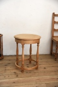 フランスで買い付けた丸い天板や脚のデザインが良い木製のサイドテーブル。木の風合いが良く、丸みを帯びたフォルムや脚の装飾はコーヒーテーブルやベッドサイド、花台など様々な場所や用途でご使用頂けます。年代特有の傷、汚れ、色褪せ、歪み、反り等がございますが、風合いとしてお楽しみください。 サイズ:横/約49cm、奥行き/約48.5cm、高さ/約61cm 送料ランク:無料