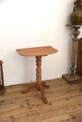 フランスで買い付けた半円の天板や脚のデザインが良い木製のサイドテーブル。木の風合いが良く、程良い丸みを帯びたフォルムや脚の装飾はベッドサイドや花台など様々な場所や用途でご使用頂けます。年代特有の傷、汚れ、色褪せ、多少の反り等がございますが、風合いとしてお楽しみください。 サイズ:横/約60cm、奥行き/約51cm、高さ/約75cm 天板:横/約60cm、奥行き/約45cm 送料ランク:H
