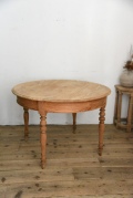フランスで買い付けたラウンドテーブル。長い間使われていたことが伺える木の風合いや木目が良く、脚のデザインも雰囲気を高めてくれています。ラウンド型でダイニングテーブルとしてはもちろん、作業台、飾り台など様々な用途や場所で使え、空間の雰囲気づくりや店舗什器としてもおすすめです。年代特有の汚れ、傷、色褪せ、シミ、歪み、多少の反り、虫喰い跡などがありますが、古い物ならではの風合いとしてお楽しみください。