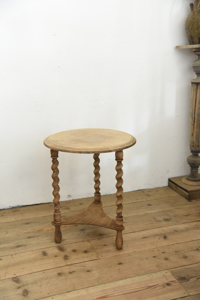 フランスで買い付けた丸い天板や脚のデザインが良い木製のサイドテーブル。木の風合いが良く、シンプルなデザインは他の家具とも調和しやすく、丸みを帯びたフォルムや脚の装飾はベッドサイドや花台など様々な場所や用途でご使用頂けます。年代特有の傷、汚れ、色褪せ、歪み等がございますが、風合いとしてお楽しみください。