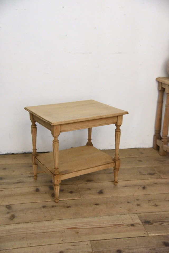 フランスで買い付けたサイドテーブル。明るい木の風合いは他の家具とも調和しやすく、程よく施された装飾の脚は上品な印象を与えてくれます。高さがあるので、サイドテーブルはもちろん、ベッドサイドや花台など様々な場所や用途でご使用頂けます。年代特有の傷、汚れ、色褪せなどがございますが、風合いとしてお楽しみください。