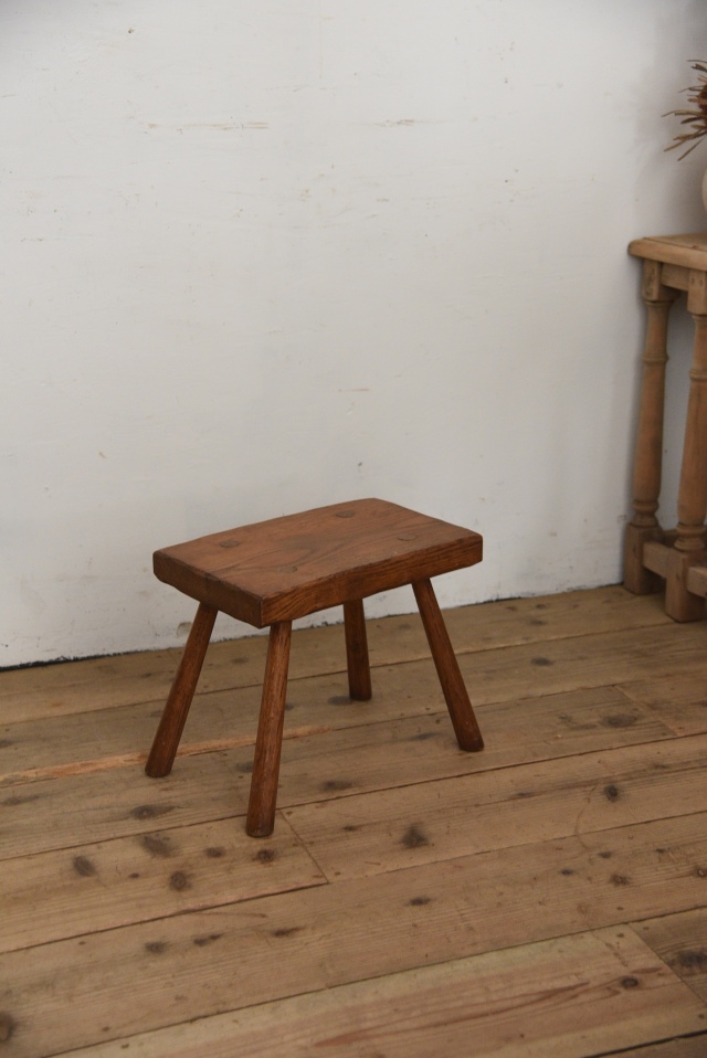 フランスで買い付けた木製スツール。木の風合いが良く、シンプルなデザインは様々なテイストと合わせやすく、飾り台やディスプレイアイテムとしても活躍してくれそうです。古い物特有の汚れや傷、色褪せなどがございますが、風合いとしてお楽しみ頂ければと思います。