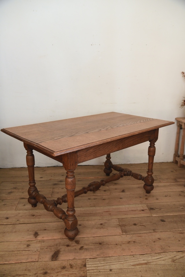 フランスで買い付けたテーブル。年月を経たことが伺える天板の表情が良く、雰囲気を引き立ててくれています。程良い装飾と、シンプルなフォルムは様々なテイストの家具とも合わせやすいので、空間の雰囲気を引き立ててくれそうです。年代特有の汚れ、傷、色褪せ、シミ、歪み、反りなどがありますが、古い物ならではの風合いとしてお楽しみください。